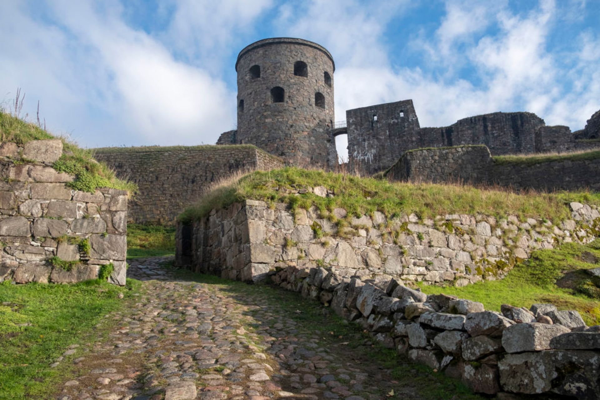 At the end of the 18th century it was decided that the now unused fortress should be demolished. Demolition crews worked at the fortress for two months, after that the money allocated for the job had run out. Residents of the nearby town of Kungälv used the dressed stone from the fortress to build houses. However, much of the fortress is still intact, including the large northern tower, Fars hatt (“Father’s hat”). As of 2015, the fortress is a museum open to visitors during summer.