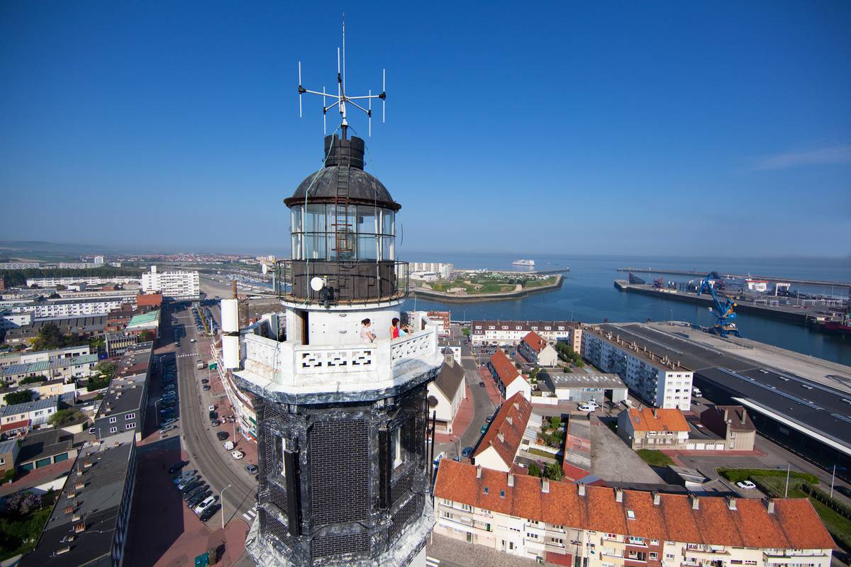 Calais Lighthouse (French: Phare de Calais) is located in Calais in Pas-de-Calais. The Lighthouse is located in the residential streets near the Port of Calais and is a significant landmark as well as a navigational aid to ships and ferries using the Straits of Dover. The lighthouse is 53m high, its tower is octagonal outside and round inside with walls 1.90m at the base and 1.50m at the summit. The foundations descend 7.40m under the cellars. The staircase has 271 steps leading up to the lantern. The central light of the lighthouse is permanent and the lantern, whose panels shut off the light, turns around the light, giving 4 flashes of 2/10th of a second every 15 seconds.