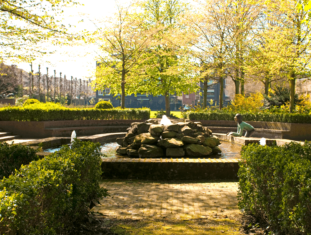 Once you enter you’ll find an oasis of peace. A small maze, beautiful statues and a small fountain make this park special. A beautiful place to relax.