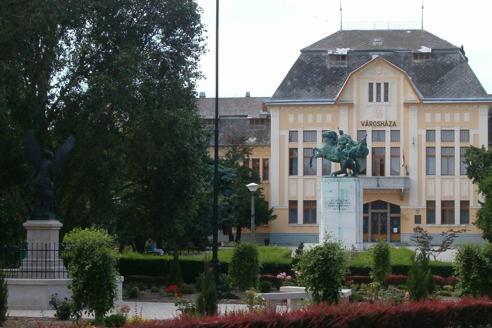 Kossuth Square: the monument to the heroic dead of World War I (Gyula Gáldi, 1938), the Monument to the Heroes of World War II (Sándor Györfi, 1992), Gyula Németh (1890-1976) Turkologist (Sándor Györfi, 1990), Lajos Kossuth (János Horvay, 1906), Sándor Petőfi (Dezső Győr, 1948), “Angyalos Fountain” (Sándor Györfy , 2001), National Flag Monument (Sándor Györfi, 1996)
